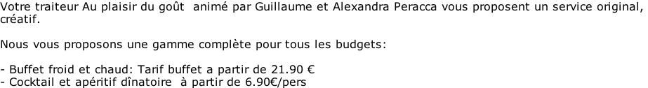 Guillaume et Alexandra Peracca sont à votre écoute pour étudier toutes vos demandes pour un service traiteur dans l’Yonne.